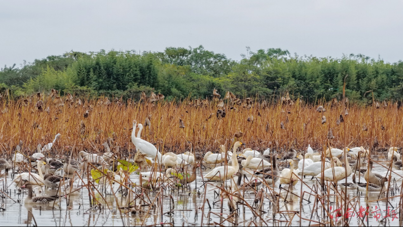進(jìn)入11月,首批白鶴飛抵鄱陽(yáng)湖