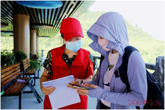 “今天天氣好,景色美,感覺身心特別愉悅。景區(qū)防疫工作挺嚴格,環(huán)境也干凈衛(wèi)生,我們出來玩感覺很放心。”來自新余的大學(xué)生馬思遠說,出行在外,要嚴格遵守景區(qū)疫情防控工作,既是保護別人也是保護自己。