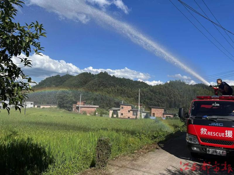 江南都市報(bào)訊 李科、全媒體記者陳建新攝影報(bào)道:入伏以來,受持續(xù)高溫天氣影響,萍鄉(xiāng)市部分多地出現(xiàn)嚴(yán)重旱情,多個(gè)鄉(xiāng)鎮(zhèn)出現(xiàn)嚴(yán)重干旱,部分鄉(xiāng)村水池、水井已干枯見底,群眾生活用水、農(nóng)作物灌溉用水受到影響。萍鄉(xiāng)市消防救援支隊(duì)依托全市44支鄉(xiāng)鎮(zhèn)專職隊(duì)伍,組建“抗旱應(yīng)急保障車隊(duì)”,快速投入抗旱送水保民生行動(dòng)。截至8月16日上午9時(shí),全市共出動(dòng)警力263人次,消防車100余趟次,為60余畝農(nóng)田、100余戶老百姓義務(wù)送水800余噸,解決了群眾生活和農(nóng)作物用水問題。