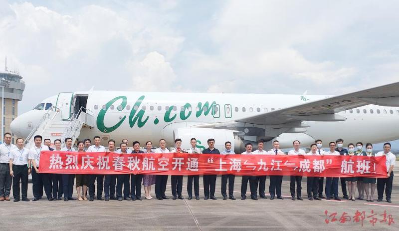 江南都市報(bào)訊 胡慧明、全媒體記者王平攝影報(bào)道:8月16日12時(shí)50分許,隨著春秋航空公司所屬的一架空客A320型客機(jī)降落在九江廬山機(jī)場,標(biāo)志著“上海?九江?成都(天府)”航線正式開通。至此,以九江為中心的三條線六個(gè)點(diǎn)的“米”字形航空網(wǎng)絡(luò)布局基本形成。