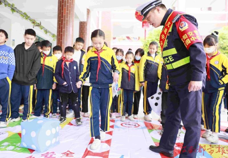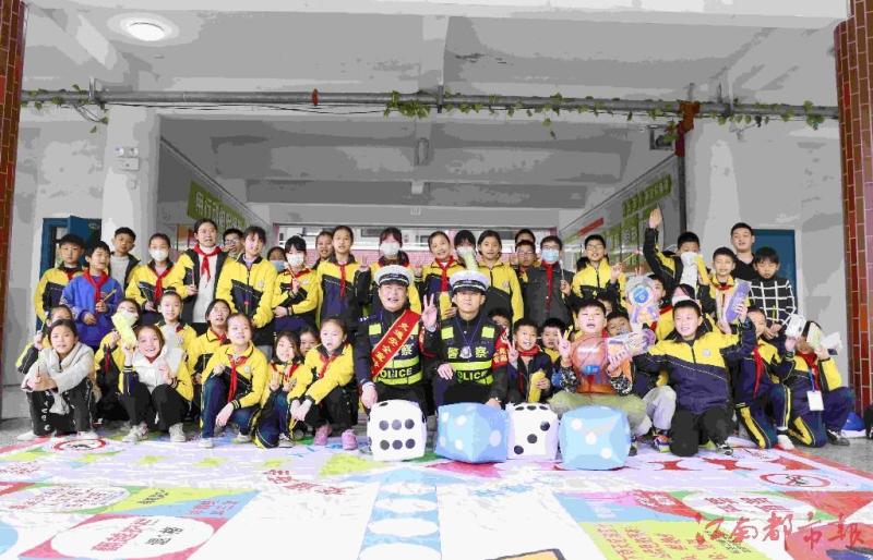 孩子們的聽課積極性空前高漲。學(xué)習(xí)完交通安全知識后,他們隨著民警來到游戲的活動現(xiàn)場,一幅巨大的交通安全“飛行棋”擺在過道上,由小學(xué)生扮成的“棋子”穿行其間,場邊不時傳來同學(xué)們的加油助威聲。民警們還根據(jù)棋盤上的提示,對“棋子”們進(jìn)行講解交通規(guī)則,教他們辨認(rèn)交通標(biāo)志。在游戲中,枯燥的交通安全知識變得活潑有趣,寓教于樂。孩子們玩得開心,交通知識“入腦入心”,讓他們對于交通安全的理解更加深刻。