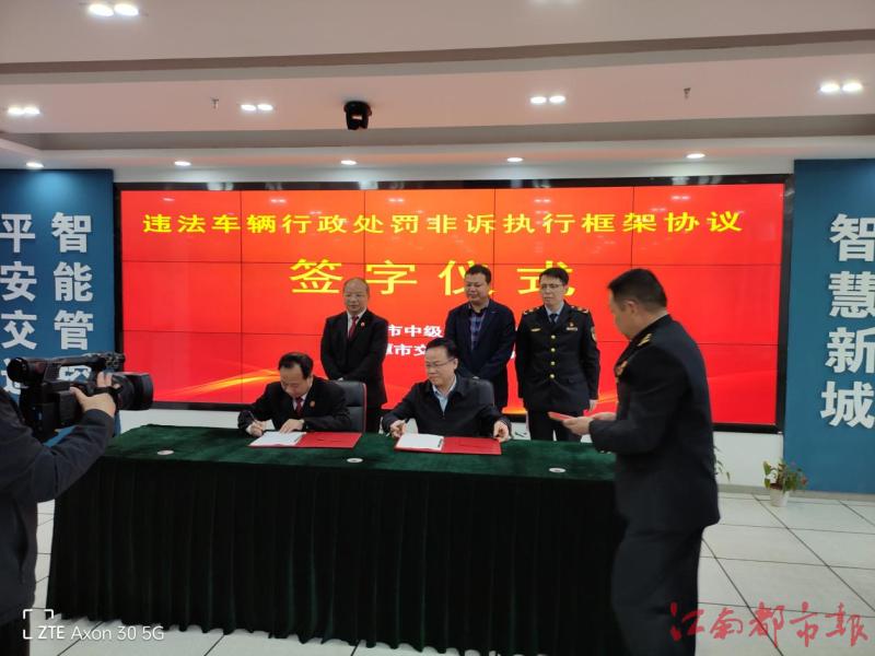 4月4日上午,鷹潭市交通運(yùn)輸局與鷹潭市中級(jí)人民法院就“違法車輛行政處罰申請(qǐng)強(qiáng)制執(zhí)行框架協(xié)議”正式簽訂。鷹潭市中級(jí)人民法院副院長(zhǎng)童力在簽字儀式致辭中強(qiáng)調(diào):交通運(yùn)輸行政執(zhí)法過程中遇到不履行行政處罰決定的,人民法院將依法強(qiáng)制執(zhí)行。
