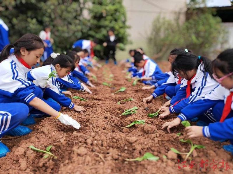 校園內(nèi),大家在老師的指導(dǎo)下或鋤地,或挖坑或栽苗,或澆灌。他們不怕臟、不怕累,個個干勁十足,在自己的“一畝三分地”幸福耕耘著,臉上洋溢著希望與喜悅。