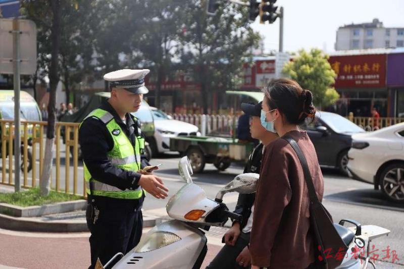 近期,萍鄉(xiāng)交警支隊(duì)直屬大隊(duì)對(duì)二輪車開展“滾動(dòng)式”整治行動(dòng),重點(diǎn)整治二輪車非法加裝遮陽傘、未佩戴安全頭盔、超員超載等交通違法行為。在嚴(yán)格執(zhí)法形成強(qiáng)有力的震懾同時(shí),交警執(zhí)法也有“溫度”,如允許有急事要辦的違法者先行離開,辦事結(jié)束后再返回接受教育、處理。