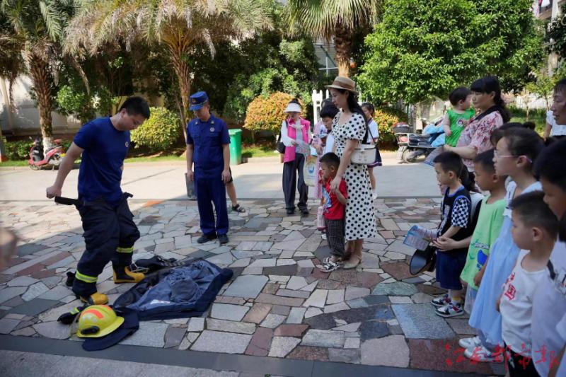 活動現(xiàn)場,消防員為孩子們表演了如何快速穿戴滅火戰(zhàn)斗服,贏得了陣陣掌聲。講解了手提式干粉滅火器的使用方法和演示了火盆滅火,并結(jié)合生活實(shí)際,用通俗易懂的語言為在場人員講解了家用電器火災(zāi)的特點(diǎn)、日常防火注意事項(xiàng)、火場中怎樣逃生自救、如何正確報火警等知識;組織參加活動人員體驗(yàn)了滅火器火盆滅火。隨后,宣傳人員向在場人員發(fā)放了小學(xué)生教育讀本和宣傳資料,再利用宣傳車播放警示教育視頻,提醒大家要時刻注重防火安全,養(yǎng)成良好的消防安全習(xí)慣,生活中注意用火、用電、用氣安全,以免發(fā)生火災(zāi)。