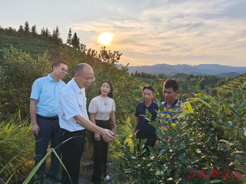 在龍?zhí)伶?zhèn)勝前村油茶基地,葉日山現(xiàn)場(chǎng)了解基地油茶管理和油茶產(chǎn)量情況,與種植戶面對(duì)面交流油茶追肥等生產(chǎn)管理細(xì)節(jié),分析油茶品種和產(chǎn)量,并有針對(duì)性地提出了改進(jìn)提升措施。座談會(huì)上,葉日山聽取了定南縣林業(yè)局、不動(dòng)產(chǎn)登記中心的工作匯報(bào),了解了林權(quán)審核審批、工作流程及鄉(xiāng)鎮(zhèn)林長(zhǎng)辦人員配置和工作開展情況,并與相關(guān)辦證人員和受邀已辦證的群眾代表親切交流,廣泛聽取意見建議。