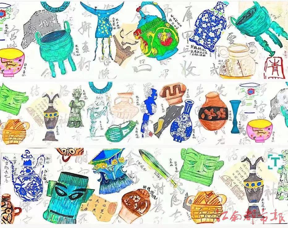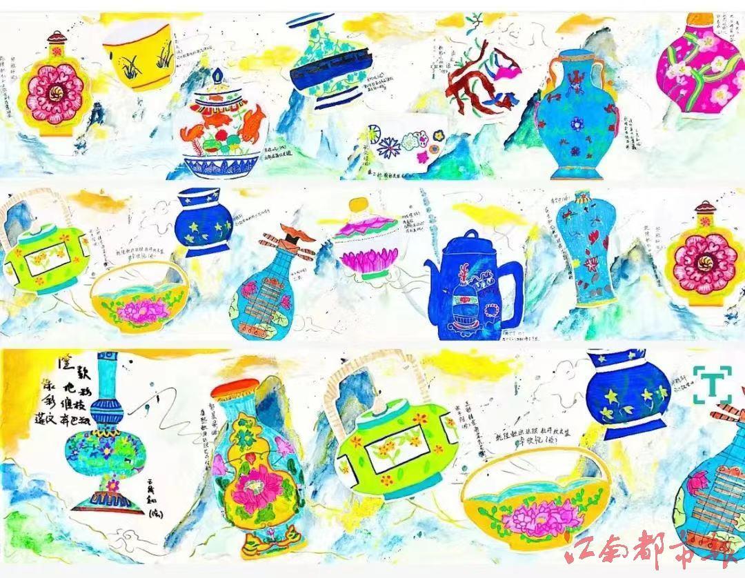 除了“繪藍(lán)圖”的主題作品,青少年還創(chuàng)作了一批精美的手工,青花瓷、青銅器等系列作品,在創(chuàng)造中了解和感受中國傳統(tǒng)文化的魅力。