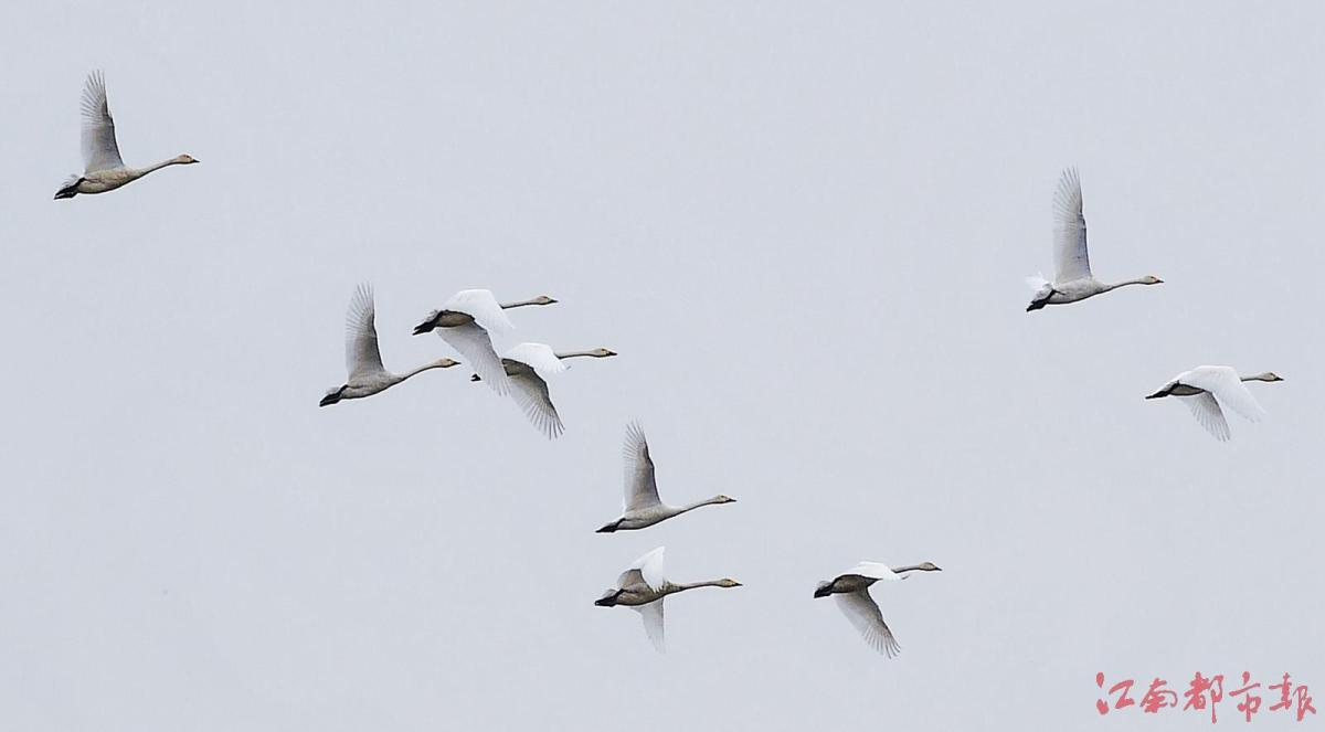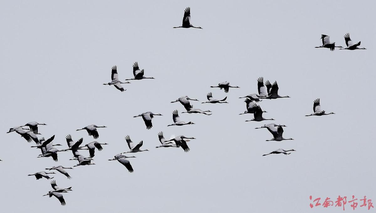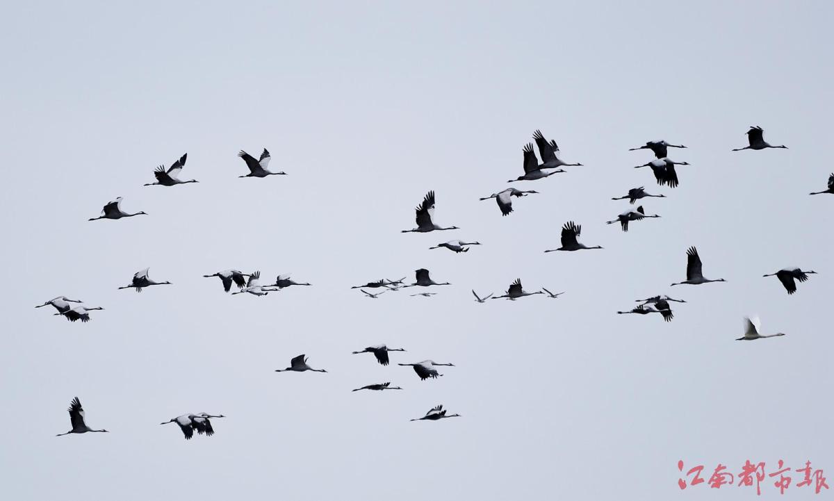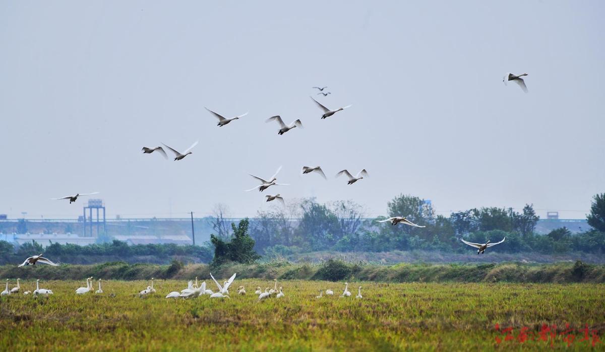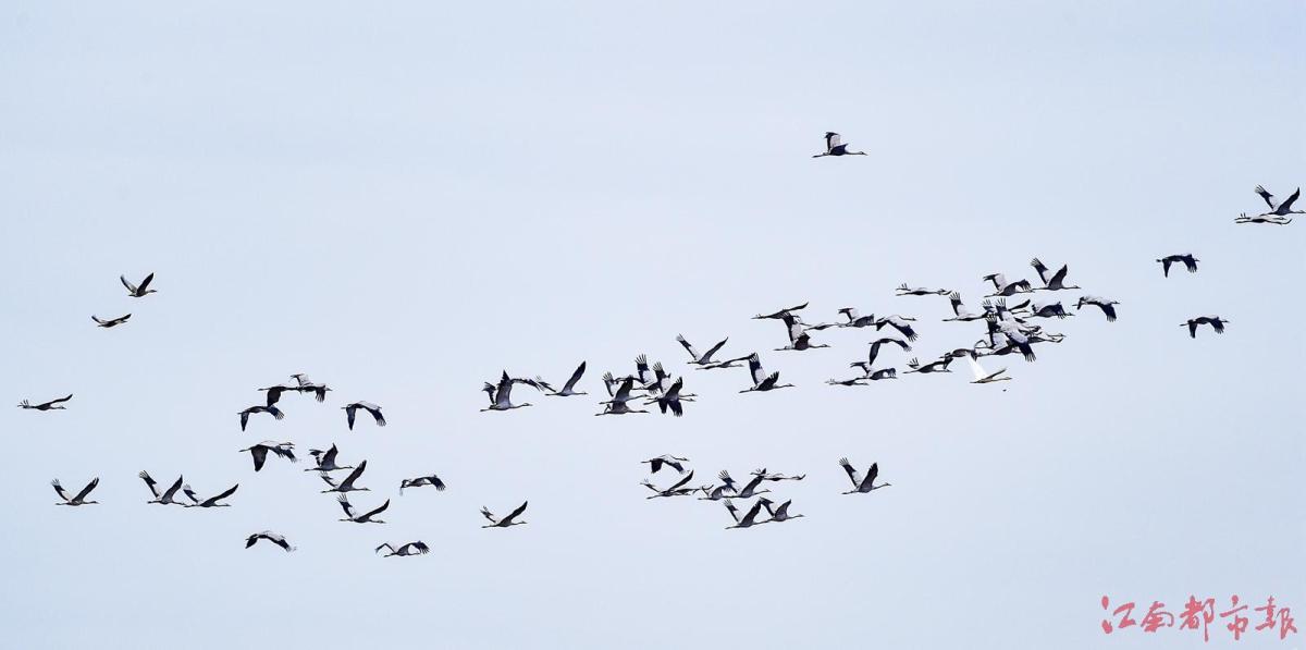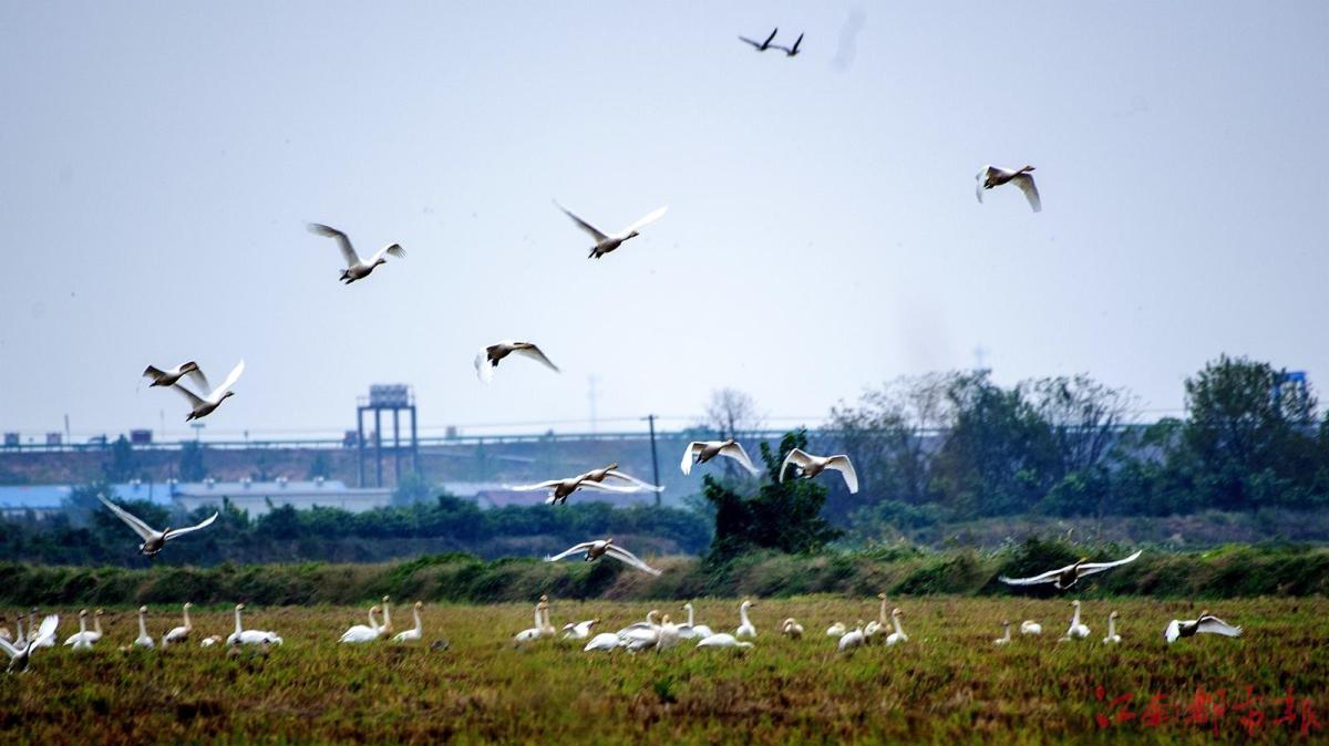 江南都市報訊 全媒體記者許南平攝影報道:11月13日,隨著氣溫逐漸下降,大批候鳥飛抵江西鄱陽湖越冬。當日,在南昌市高新區(qū)五星墾殖場管理處湘子口圩堤內(nèi)外的湖灘和稻田里,成群結(jié)隊的白鶴、大雁、小天鵝、灰鶴等越冬候鳥在湖區(qū)翩翩起舞、覓食,成為鄱陽湖區(qū)一道特別的風景。清脆歡快的鳥語聲不時飄蕩在廣袤的田野和天空,呈現(xiàn)出一派人與自然和諧共生的美麗畫卷。 鄱陽湖是中國第一大淡水湖,也是國際重要濕地、亞洲最大的越冬候鳥棲息地,被譽為“候鳥天堂”,每年秋冬季節(jié),數(shù)十萬只越冬候鳥遷徙至鄱陽湖越冬。