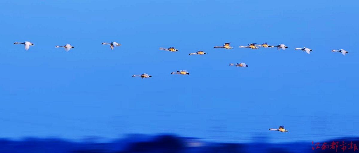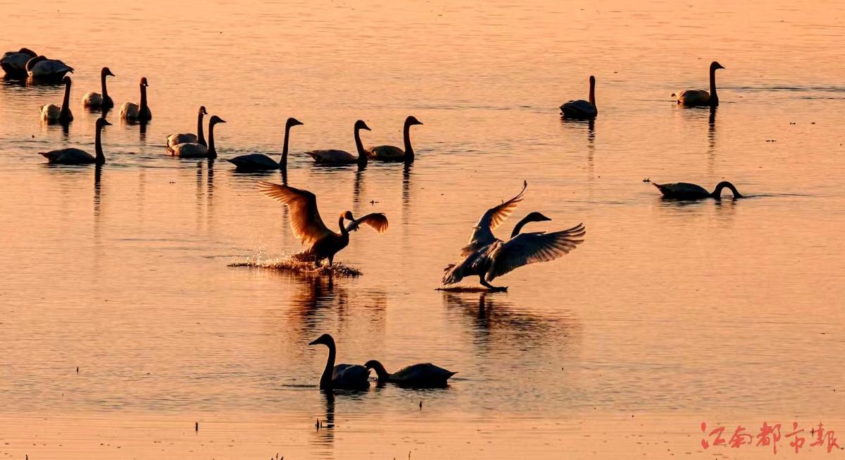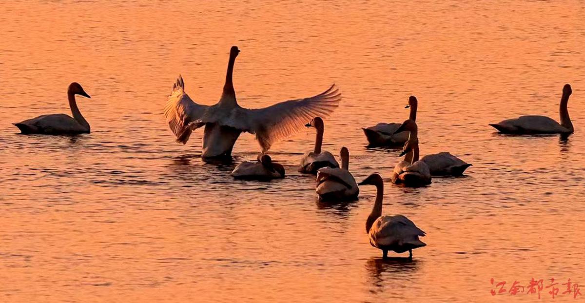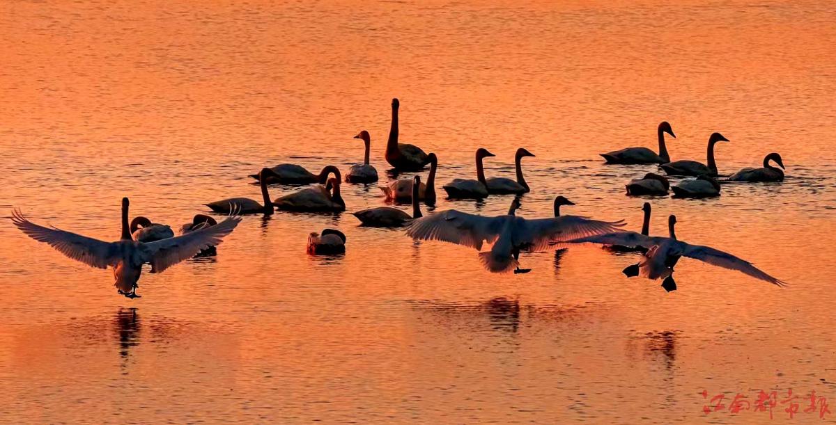 江南都市報訊 全媒體記者許南平攝影報道:12月14日,在進賢縣青嵐湖沿岸,成群的小天鵝在此聚集。這些白色精靈或獨行,或結(jié)伴,時而低頭覓食、時而凌空飛翔、時而游水嬉戲,情態(tài)各異、美妙絕倫,與周圍的景色交相呼應(yīng),形成一幅優(yōu)美動人的生態(tài)畫卷,為冬日的青嵐湖蛤蟆墩水域增添了無盡的生機與活力。據(jù)悉,每年11月開始,都會有大量的小天鵝選擇青嵐湖越冬。小天鵝是國家二級重點保護野生動物,喜歡群棲在湖泊和沼澤地帶,主要以水生植物為食。青嵐湖良好的自然生態(tài)環(huán)境使這里成為眾多候鳥越冬的棲息地。