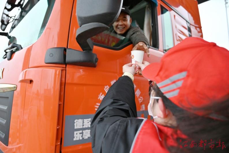 “這里是山區(qū)高速,入冬后大清早氣溫有點低,而且風又大,喝完你們的姜茶,身上暖和了,心里也暖暖的。”當司乘喝上暖暖的姜茶,都豎起了大拇指,特別是貨車司機,經(jīng)過一晚的長途跋涉,在外廣場暫時休息時,喝上一杯濃濃的紅糖姜茶,直呼消除了一身疲憊,身心愉悅。
