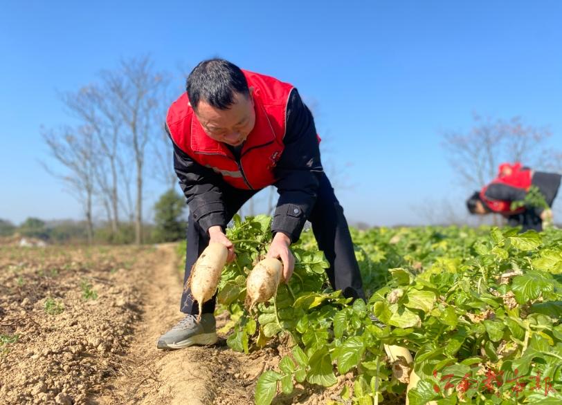 江南都市報(bào)訊 葉婷、全媒體記者劉火兵攝影報(bào)道:“冬吃蘿卜夏吃姜。”眼下正是蘿卜豐收的季節(jié),然而唐江鎮(zhèn)老嚴(yán)卻因家中勞動(dòng)力不足,而為幾畝長勢喜人的蘿卜犯難。贛崇高速崇義收費(fèi)所的領(lǐng)導(dǎo)聽聞這一情況后,立即組織黨團(tuán)志愿者們組成“助農(nóng)小分隊(duì)”,協(xié)助農(nóng)民拔蘿卜。