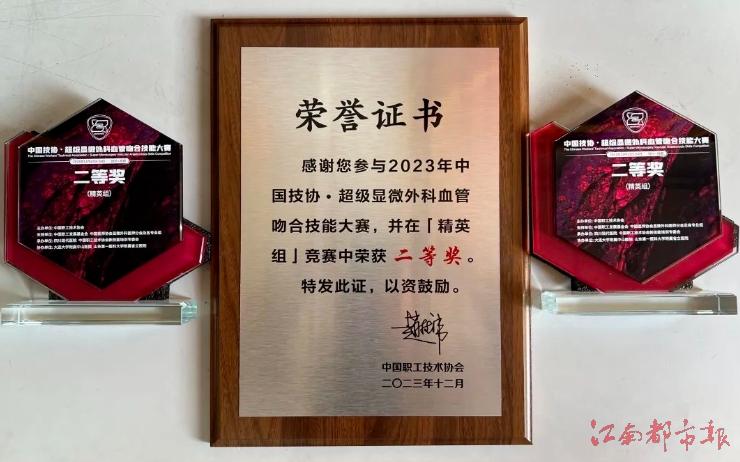 2023年12月22日—24日,“中國(guó)技協(xié)•超級(jí)顯微外科血管吻合技能大賽”在四川成都成功舉行,江西醫(yī)學(xué)高等專科學(xué)校第一附屬醫(yī)院手足顯微外科蔣文鋒、占太川醫(yī)生在教練、領(lǐng)隊(duì)張億平主任的帶領(lǐng)下,與來(lái)自全國(guó)186家醫(yī)院257支國(guó)內(nèi)顯微外科專業(yè)共750余名同道選手PK,順利晉級(jí)決賽,并在決賽中以全國(guó)第四名的優(yōu)異成績(jī)榮獲個(gè)人精英賽“二等獎(jiǎng)”的好成績(jī)。