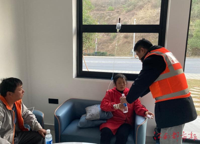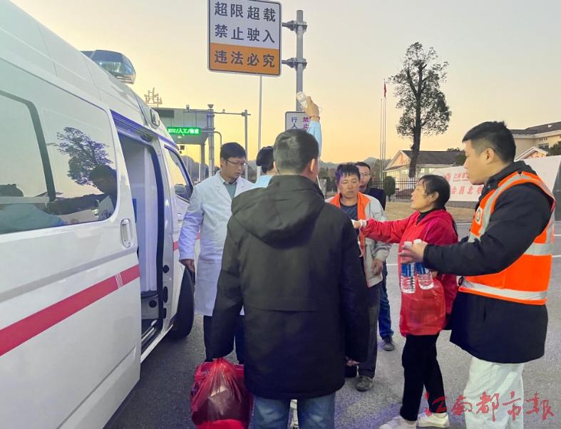 為幫助受傷的群眾爭(zhēng)取救治時(shí)間,該站值班人員第一時(shí)間帶受傷婦女到就近的衛(wèi)生院進(jìn)行簡(jiǎn)易的處理,對(duì)傷口進(jìn)行止血、包扎等。處理完之后,立即把受傷群眾帶回會(huì)昌北收費(fèi)站“欲曉驛站”等待救護(hù)車到來(lái)。此時(shí)正值午飯,該站值班人員端上了熱乎乎的飯菜,為受傷群眾補(bǔ)充能量。5分鐘后,救護(hù)車及時(shí)趕到,該站開啟了救護(hù)專用通道加快救護(hù)車輛通行。
