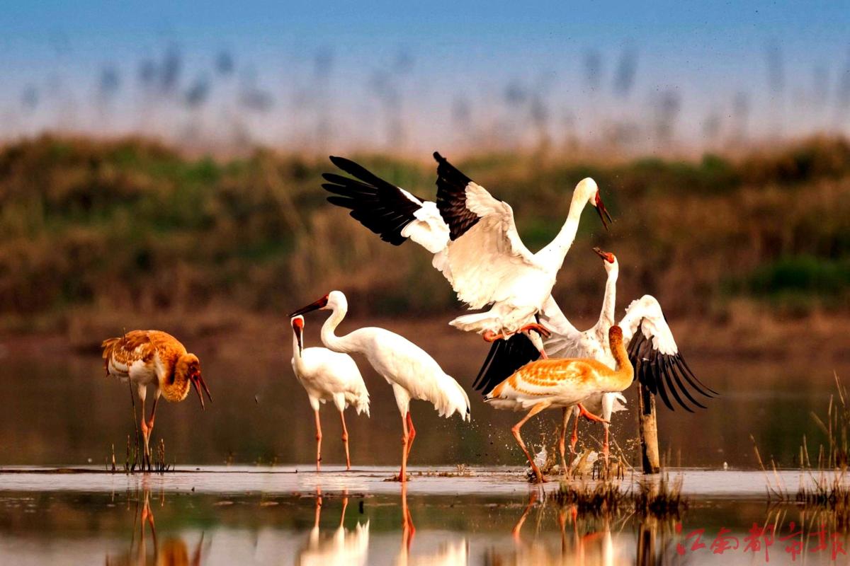 江南都市報訊 全媒體記者許南平攝影報道:1月4日,江南都市報全媒體記者獲悉,去年12月,江西鄱陽湖南磯濕地國家級自然保護區(qū)管理局在保護區(qū)開展19次鳥類調(diào)查,共記錄到鳥類59種,437746羽次。其中冬候鳥39種,占66.10%,留鳥14種,占23.73%;夏候鳥3種,占5.08%;旅鳥2種,占3.39%。迷鳥1種,占1.69%。與11月相比,12月冬候鳥種類基本不變,數(shù)量也基本維持穩(wěn)定,增加了一種迷鳥——白頰黑雁。根據(jù)12月記錄顯示,江西鄱陽湖南磯濕地國家級自然保護區(qū)數(shù)量最多的5種鳥類為:豆雁81747羽次,赤頸鴨44268羽次,綠翅鴨27557羽次,鴻雁26822羽次,灰雁19882羽次。在保護區(qū)各監(jiān)測點出現(xiàn)頻次最多的5種鳥為:豆雁67次,白鶴61次,東方白鸛57次,鴻雁53次。保護動物記錄分別為:國家一級保護野生動物6種,它們是:白鶴、白枕鶴、白頭鶴、東方白鸛、青頭潛鴨、麋鹿。國家二級保護野生動物11種:灰鶴、白琵鷺、小天鵝、鴻雁、白額雁、黑翅鳶、白胸翡翠、白腹鷂、白尾鷂、游隼、紅隼。