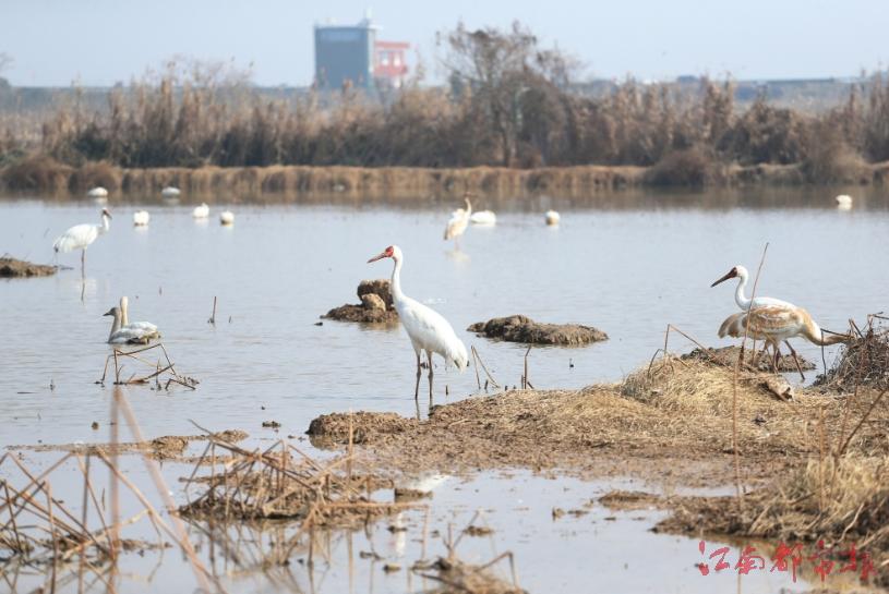 據(jù)了解,由于氣溫回升,鳥類活動增加,更加便于此次調(diào)查監(jiān)測工作的進行。僅在南磯濕地保護區(qū)就觀察到1500多羽白鶴,表明今年的越冬候鳥出現(xiàn)了新的動向,許多候鳥覓食從周邊農(nóng)田又回歸到鄱陽湖保護區(qū)。胡斌華表示,針對去年鄱陽湖出現(xiàn)極枯水位,今年保護區(qū)及時作了適應(yīng)性調(diào)整,“根據(jù)鳥類棲息的變化,來調(diào)節(jié)鄱陽湖蝶形湖的水位,從而更好地滿足不同候鳥的需求”。胡斌華告訴記者,南磯濕地保護區(qū)一直都是白鶴非常重要的棲息地,尤其是2017年以后趨勢更加明顯。“我們每年調(diào)查到的白鶴數(shù)量都占到了鄱陽湖保護區(qū)白鶴數(shù)量的1/5,除此之外,南磯濕地保護區(qū)還是那些在周邊農(nóng)田和藕塘覓食白鶴的夜棲地。”(圖片拍攝:王能玉)