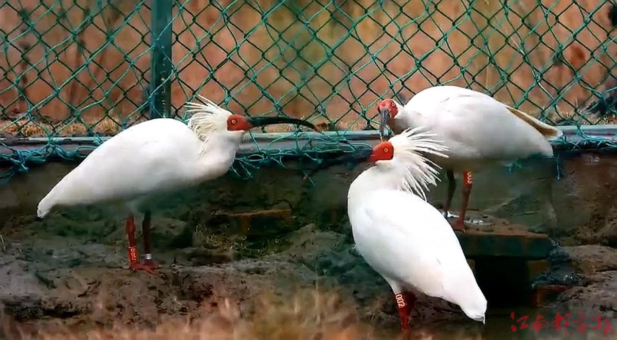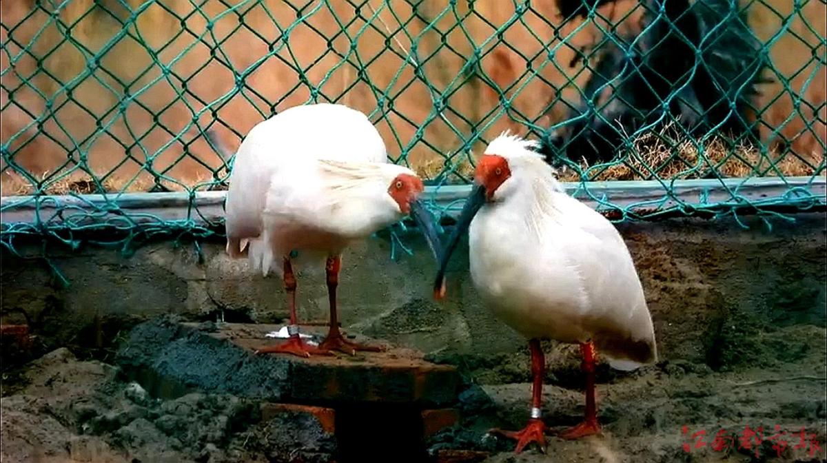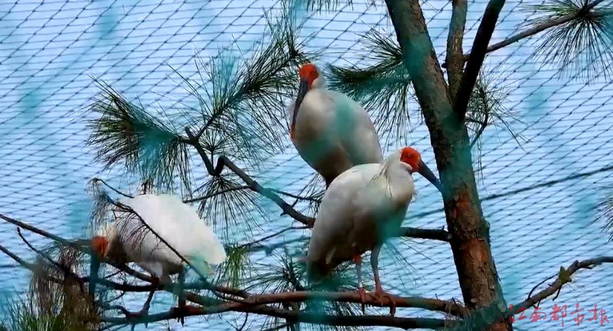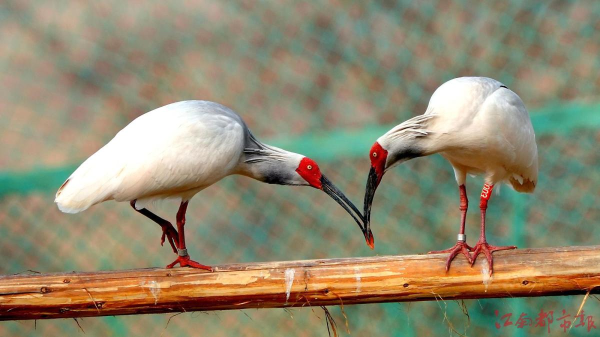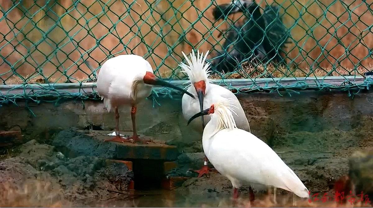 江南都市報訊 全媒體記者許南平攝影報道:1月18日,在龍虎山景區(qū)上清鎮(zhèn)沙灣村琵琶山基地,我省首次實施朱鹮野化放歸的8只國寶已經有了“早戀”跡象,大約有3對“戀人”了。記者注意到,成對的朱鹮時而親親嘴,時而互相梳理毛發(fā),使得朱鹮繁育基地愛意濃濃。朱鹮,又名朱鷺,俗名紅鶴,素有“東方寶石”“稀世珍禽”“吉祥鳥”“美麗之神”“天下第一鳥”等美稱。已在地球上生存了6500萬年,說它是活化石毫不過分。被列為國際極危級、中國一級保護動物,承載著古老的文化氣息。江西是朱鹮種群重要的歷史分布地。經過前期調查和科學研究,國家林業(yè)和草原局2023年批準從陜西漢中朱鹮國家級自然保護區(qū)引入朱鹮到江西,20只朱鹮將分批“安家”鷹潭龍虎山,啟動首次在江西開展的朱鹮野化放飛實驗研究。這些遠道而來的朱鹮,會在網籠中逐步適應當?shù)貧夂颦h(huán)境,進行覓食、棲息、筑巢、繁殖等一系列自然行為,經過一段時間達到條件后,將被分批放飛野外。