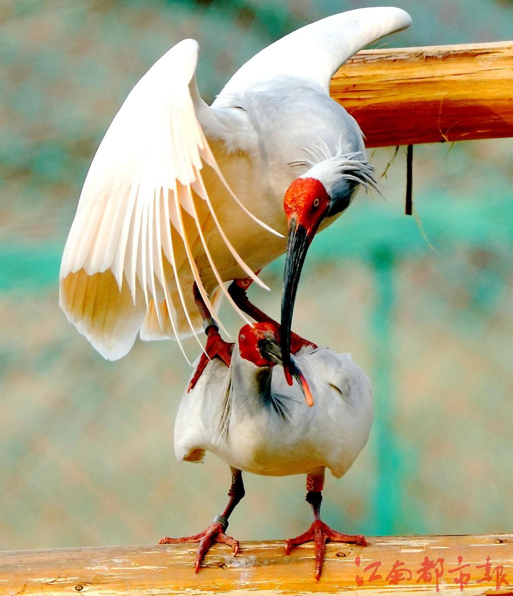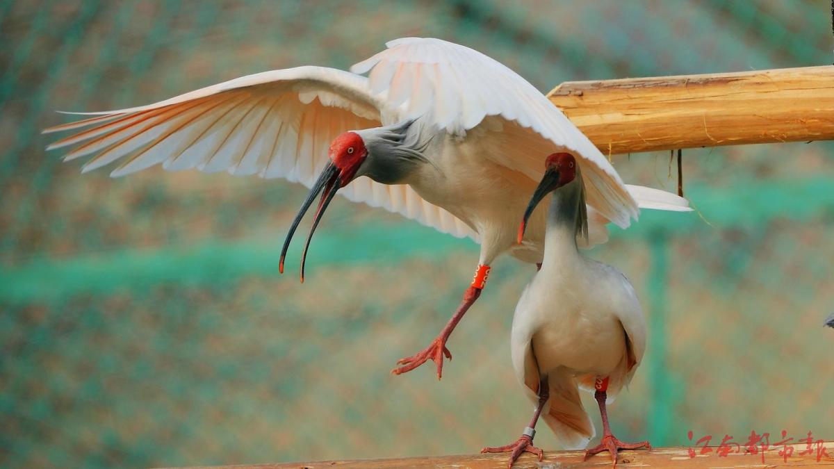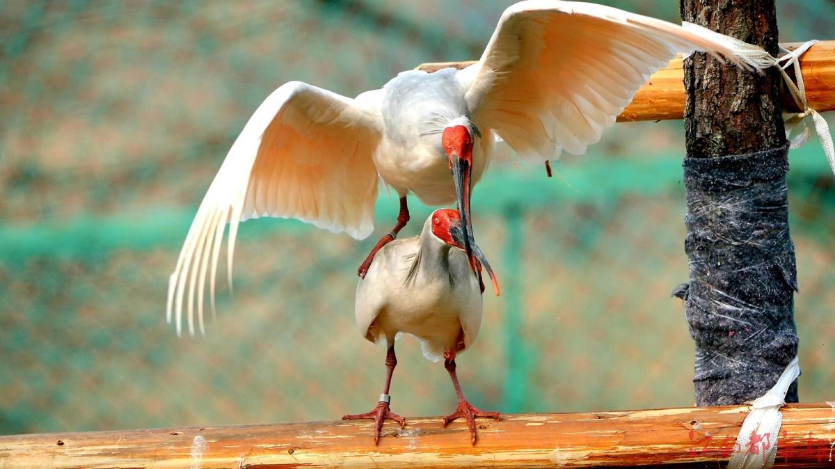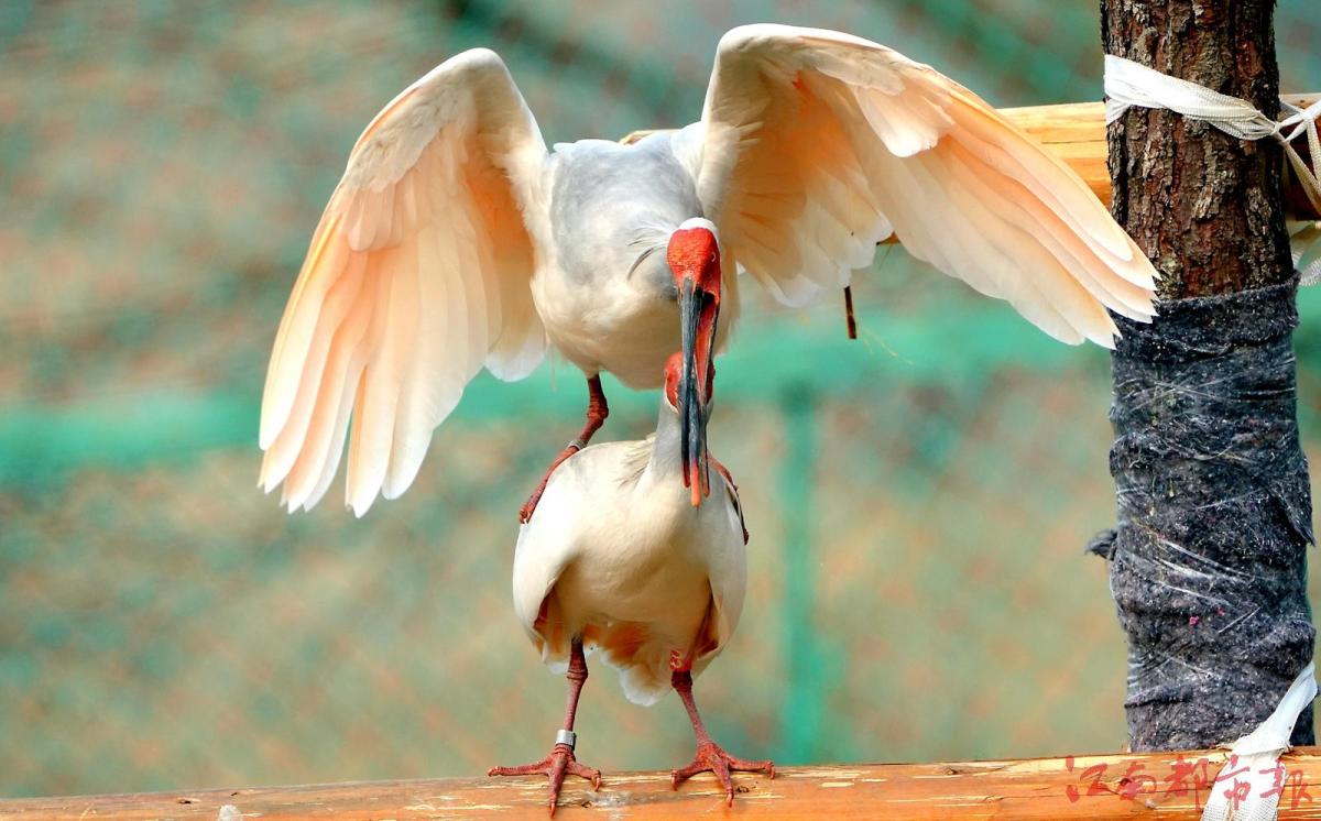 江南都市報訊 全媒體記者許南平攝影報道:1月18日,在龍虎山景區(qū)上清鎮(zhèn)沙灣村琵琶山基地,我省首次實施朱鹮野化放歸的8只國寶已經有了“早戀”跡象,大約有3對“戀人”了。記者注意到,成對的朱鹮時而親親嘴,時而互相梳理毛發(fā),使得朱鹮繁育基地愛意濃濃。朱鹮,又名朱鷺,俗名紅鶴,素有“東方寶石”“稀世珍禽”“吉祥鳥”“美麗之神”“天下第一鳥”等美稱。已在地球上生存了6500萬年,說它是活化石毫不過分。被列為國際極危級、中國一級保護動物,承載著古老的文化氣息。江西是朱鹮種群重要的歷史分布地。經過前期調查和科學研究,國家林業(yè)和草原局2023年批準從陜西漢中朱鹮國家級自然保護區(qū)引入朱鹮到江西,20只朱鹮將分批“安家”鷹潭龍虎山,啟動首次在江西開展的朱鹮野化放飛實驗研究。這些遠道而來的朱鹮,會在網籠中逐步適應當?shù)貧夂颦h(huán)境,進行覓食、棲息、筑巢、繁殖等一系列自然行為,經過一段時間達到條件后,將被分批放飛野外。