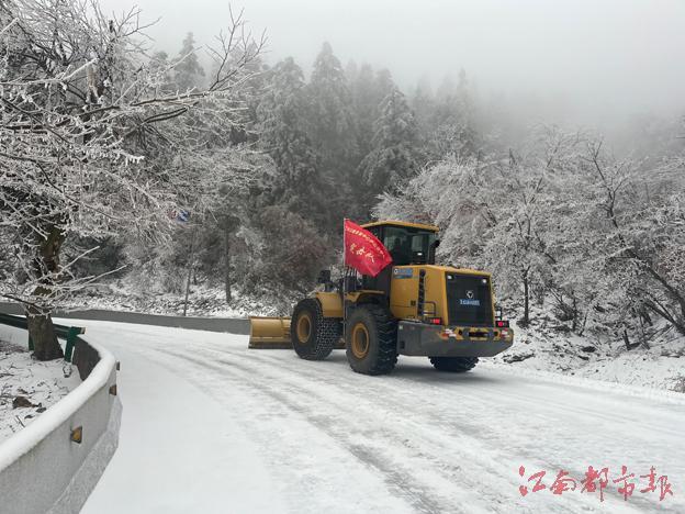 江南都市報訊 凌錫嘉、全媒體記者章娜、實習(xí)生熊羽掀攝影報道:2月22日,受新一輪寒潮冰凍天氣影響,九江廬山地區(qū)出現(xiàn)大范圍雨雪天氣,本次雪情正值游客來山及春運返程高峰期間,S402廬山登山公路積雪,嚴(yán)重影響交通出行安全,廬山公路部門積極除雪保暢。