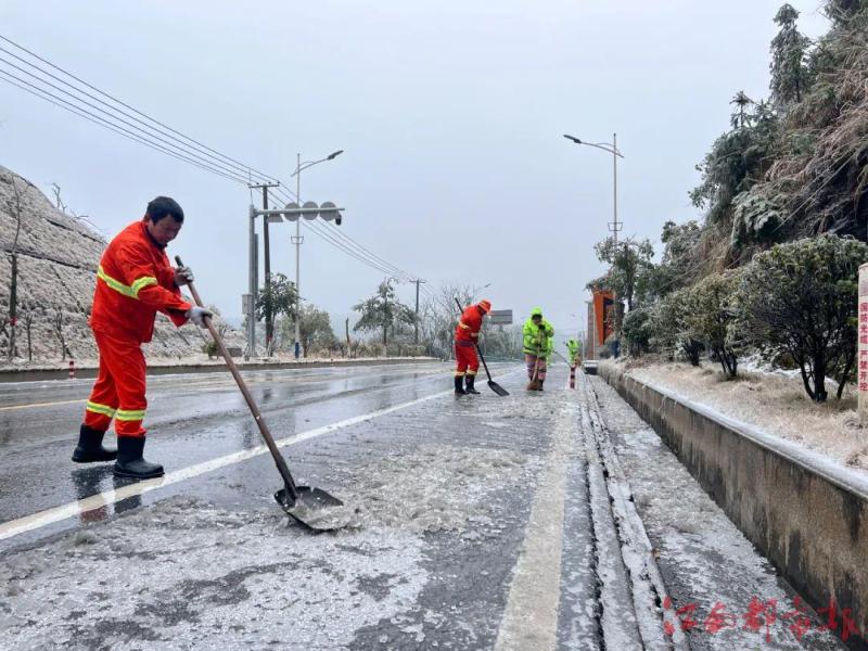 江南都市報訊 全媒體記者陳建新攝影報道:2月23日上午,萍鄉(xiāng)市氣象部門發(fā)布道路結冰黃色預警信號,22~24日,該市維持低溫陰雨(凍雨、雨夾雪)天氣。該市大部分地區(qū)有凍雨,易發(fā)生電線積冰,高寒山區(qū)有小雪,山區(qū)道路路面溫度低于0℃,易發(fā)生道路結冰。