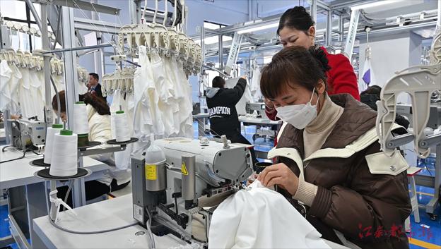 江南都市報訊 全媒體記者盧勇攝影報道:2月25日,在鷹潭市貴溪市文坊鎮(zhèn)竹產(chǎn)業(yè)園,江西欣達制衣有限公司工人帶著滿滿的干勁回到工作崗位,他們熟練地操作著機械,將一件件衣服縫制成型,整個車間一片忙碌的火熱景象。