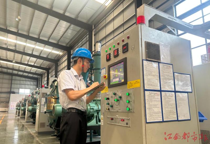江西粵磁稀土新材料科技有限公司的工作人員正在檢測設(shè)備并記錄數(shù)據(jù)。劉蘇蘇/攝