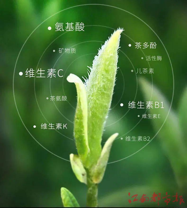 永新白茶富含多種營養(yǎng)成分,如碳水化合物、蛋白質(zhì)、脂肪、維生素、礦物元素等,其中維生素含量最為豐富。由于維生素性能極不穩(wěn)定,尤其對溫度變化十分敏感,如維生素C,一旦溫度變化就會發(fā)生分解。而永新白茶得益于優(yōu)良的生長環(huán)境,環(huán)境溫度低,生長周期長,可以有效保護(hù)維生素性能,從而保證永新白茶中維生素含量最高。