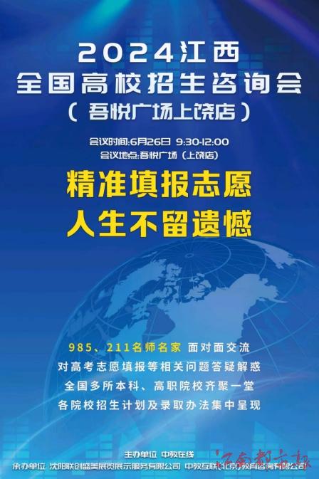 6月26日,“2024江西全國高校招生咨詢會——上饒專場”活動將在上饒吾悅廣場舉行,為全國各大高校和廣大考生搭建一個良好的信息溝通平臺,指導(dǎo)考生精準、合理填報志愿。