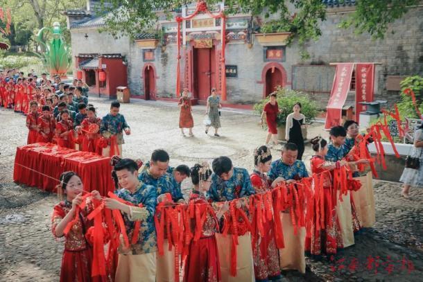 國(guó)潮風(fēng)的互動(dòng)演出吸引眾多游客打卡七鯉古鎮(zhèn)