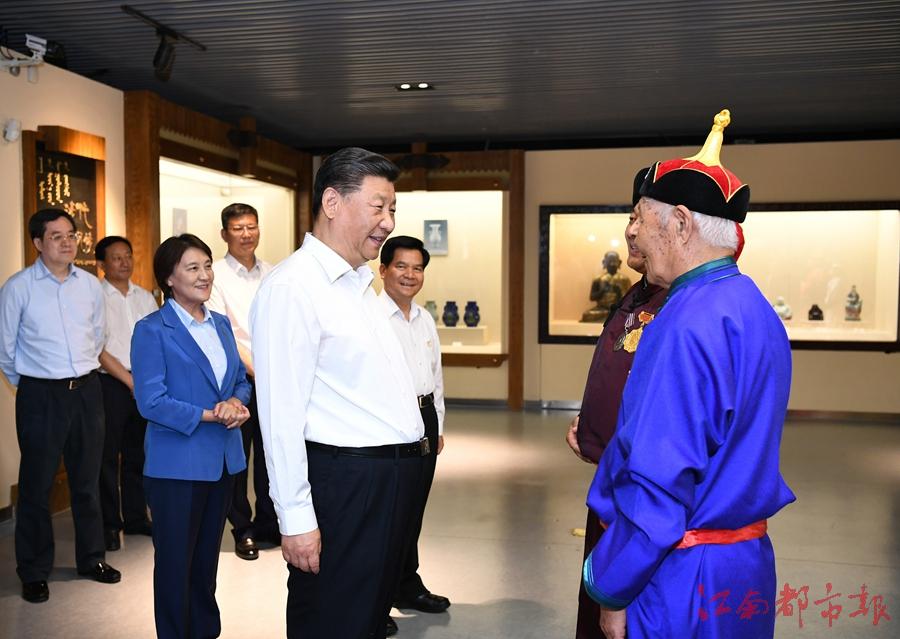 2019年7月,習(xí)近平總書記考察內(nèi)蒙古時,在赤峰博物館觀看了古典民族史詩《格薩(斯)爾》說唱展示,同《格薩(斯)爾》非物質(zhì)文化遺產(chǎn)傳承人親切交談。