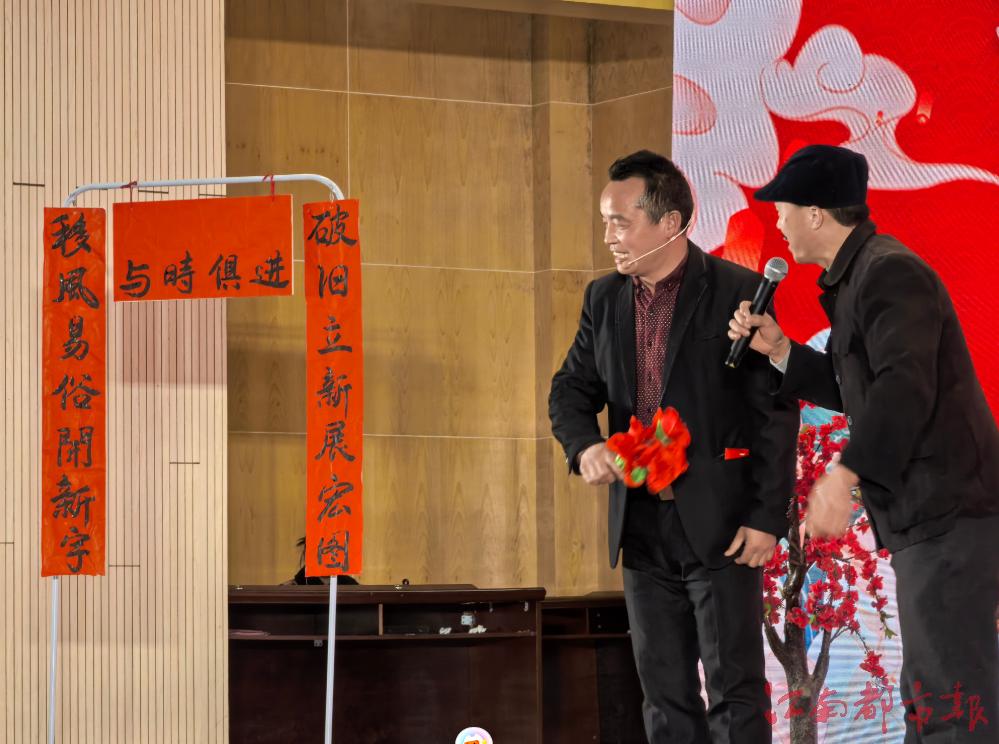 江南都市報(bào)訊 蘭春、蔣麗、彭樹美、全媒體記者盧勇攝影報(bào)道:“婚喜事,簡辦好;講文明,樹新風(fēng);不攀比,無煩惱……”近日,在吉安市青原區(qū)新圩鎮(zhèn)移風(fēng)易俗優(yōu)秀典型頒獎(jiǎng)文藝匯演上,由該鎮(zhèn)自編自導(dǎo)自演的采茶戲《阿東相親》等節(jié)目贏得群眾陣陣掌聲。