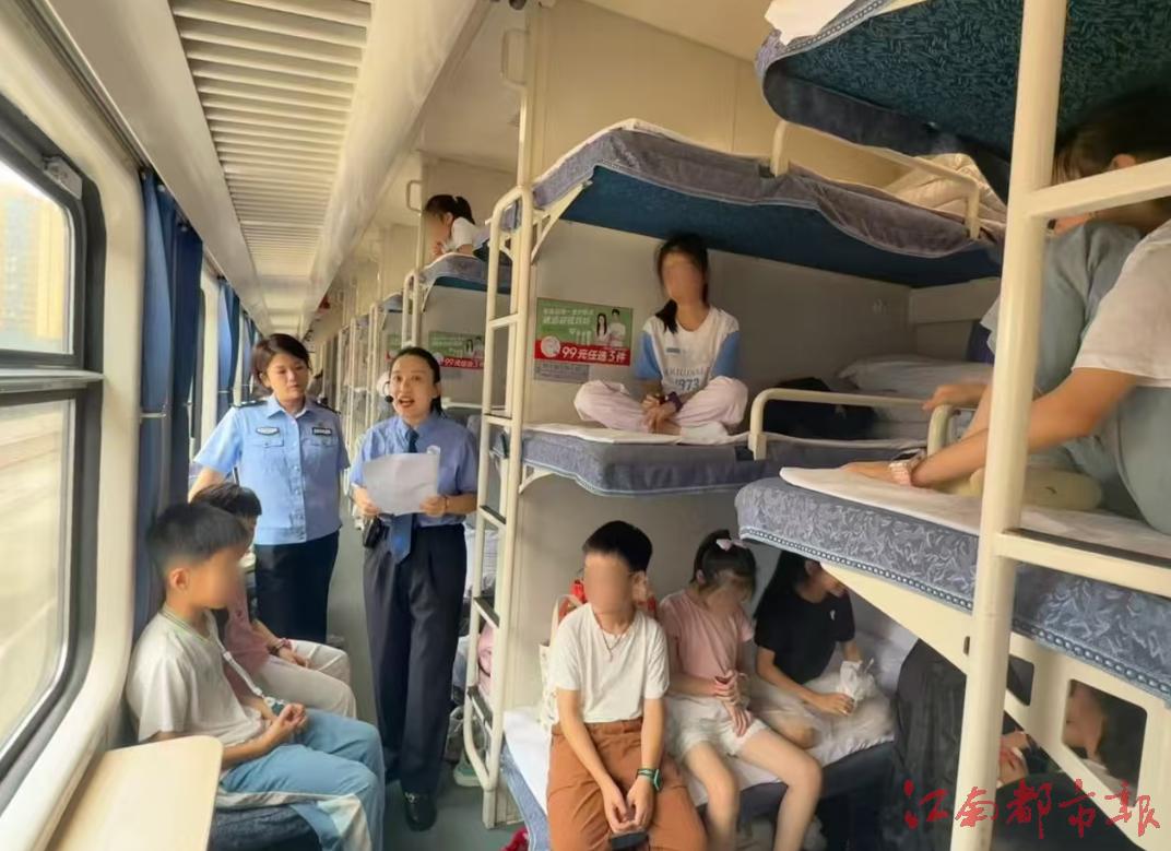 江南都市報訊 皮婉婷、全媒體記者章娜攝影報道:“各位大朋友、小朋友,4號車廂開設‘法治移動課堂’,歡迎大家積極互動參與!”近日,在一趟開往演出地“含娃量”極高的列車上,南昌鐵路運輸檢察院的干警們帶著精心準備的“法治小課堂”,與少兒交響樂團的小朋友們開啟了一場特殊的旅程,為他們送出了量身定制的安全出行錦囊。