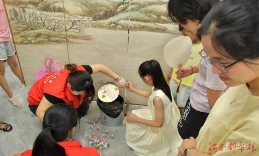 隨后,實踐隊與小朋友們開展了趣味手工活動。在志愿者指導下,孩子們用黏土制作水果,盡情釋放童真創(chuàng)意。漆扇制作體驗活動中,孩子們在了解漆扇歷史與工藝后,制作出色彩斑斕、圖案各異的漆扇,在心中種下非遺傳承的種子。通過多種形式的活動,志愿者為文坊鎮(zhèn)的文明實踐注入新活力。