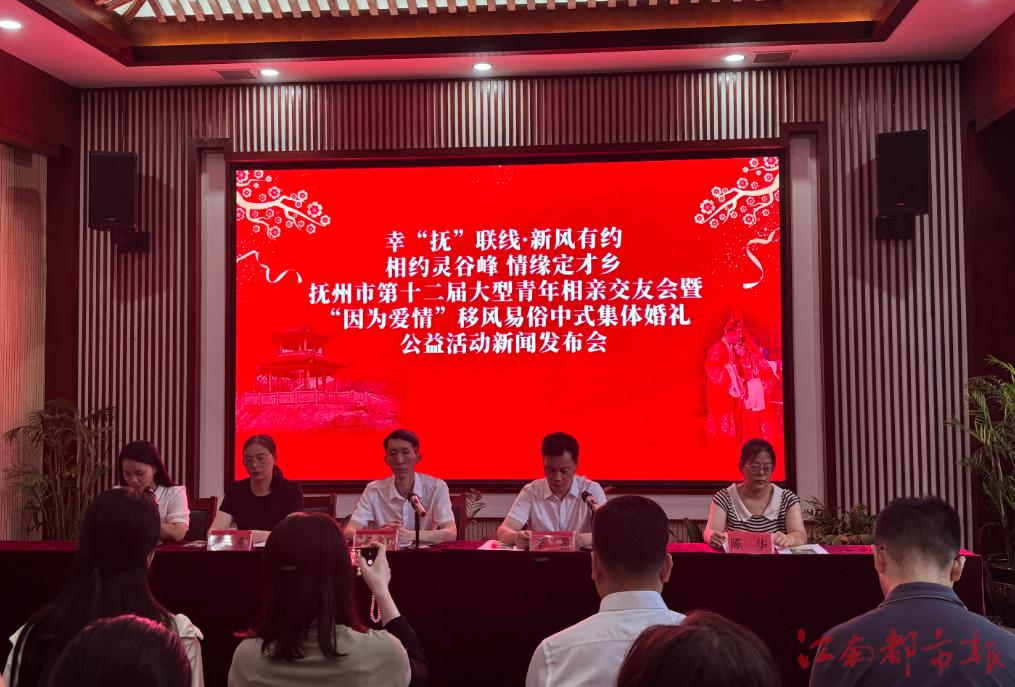 江南都市報訊 全媒體記者舒曉燕攝影報道:7月31日,“幸‘撫’聯線·新風有約”2025年撫州市婚戀文化季之“相約靈谷峰·情緣定才鄉(xiāng)”撫州市第十二屆大型青年相親交友會暨“因為愛情”中式集體婚禮公益活動新聞發(fā)布會舉行。