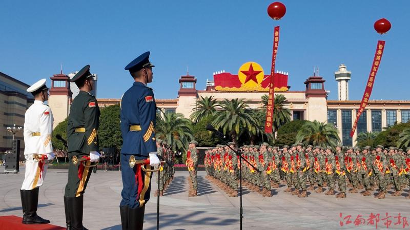 在南昌八一廣場,一場以“紅土地吹響出征號、英雄城走出英雄兵”為主題的新兵歡送儀式在此舉行。活動現(xiàn)場,500名預(yù)定新兵身著戎裝、胸戴大紅花整齊列隊,來自江西省軍區(qū)某隊的司號員現(xiàn)場吹響出征號,廣大新兵堅定報國志,從容邁過從戎門奔赴軍營。