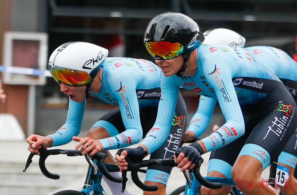 賽段后半程,道路條件變得對車手們更為有利——最后20公里非常平緩,道路筆直,車手們可以輕松騎到50公里每小時。德國助力車隊顯然不愿輕易讓出藍衫,全程奮力騎行。成都DYC洲際隊對于本站的冠軍志在必得。在最后三公里時,他們已經(jīng)超越了前方發(fā)車的兩支隊伍,為車隊贏得了寶貴的時間。