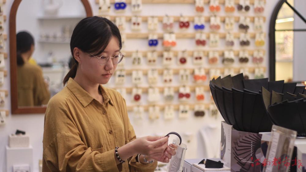 侯玥在自己開設(shè)的店鋪內(nèi)打理作品。受訪者供圖
