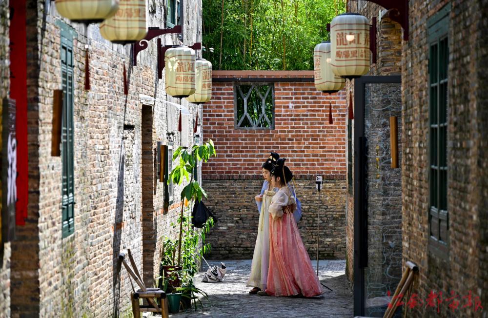年輕游客在江西省景德鎮(zhèn)市陶陽里歷史文化街區(qū)游覽。新華社記者劉金海 攝