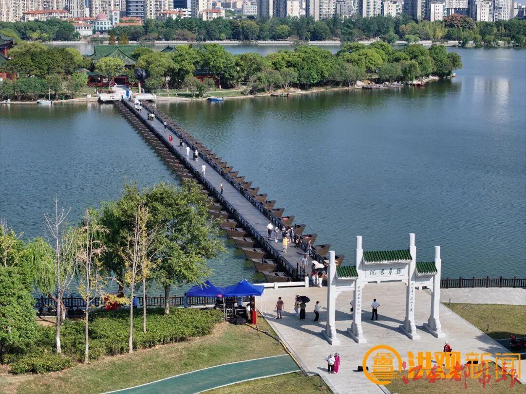 走進(jìn)豫章書院,步步是巧思,處處有文心。豫章書院項(xiàng)目借助湖心島仿古建筑本體,重新設(shè)計(jì)空間布局,完善內(nèi)部功能。配套新建設(shè)以“文化生態(tài)橋”為定位的水上浮橋(書院橋),不僅避免了對(duì)湖底生態(tài)的破壞,更形成“牌坊—浮橋—書院”的完整文化軸線,自開放以來已成為網(wǎng)紅打卡地。